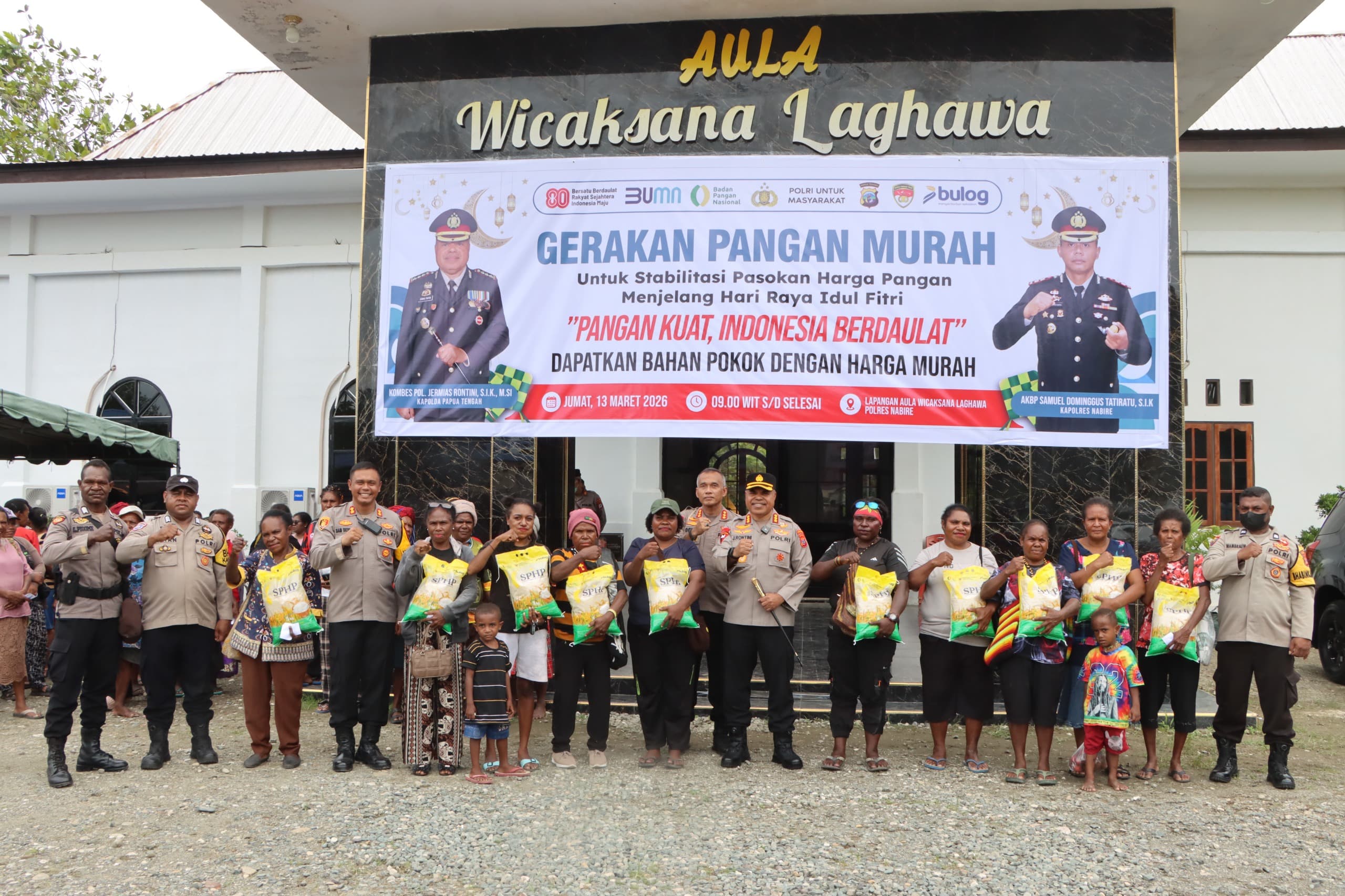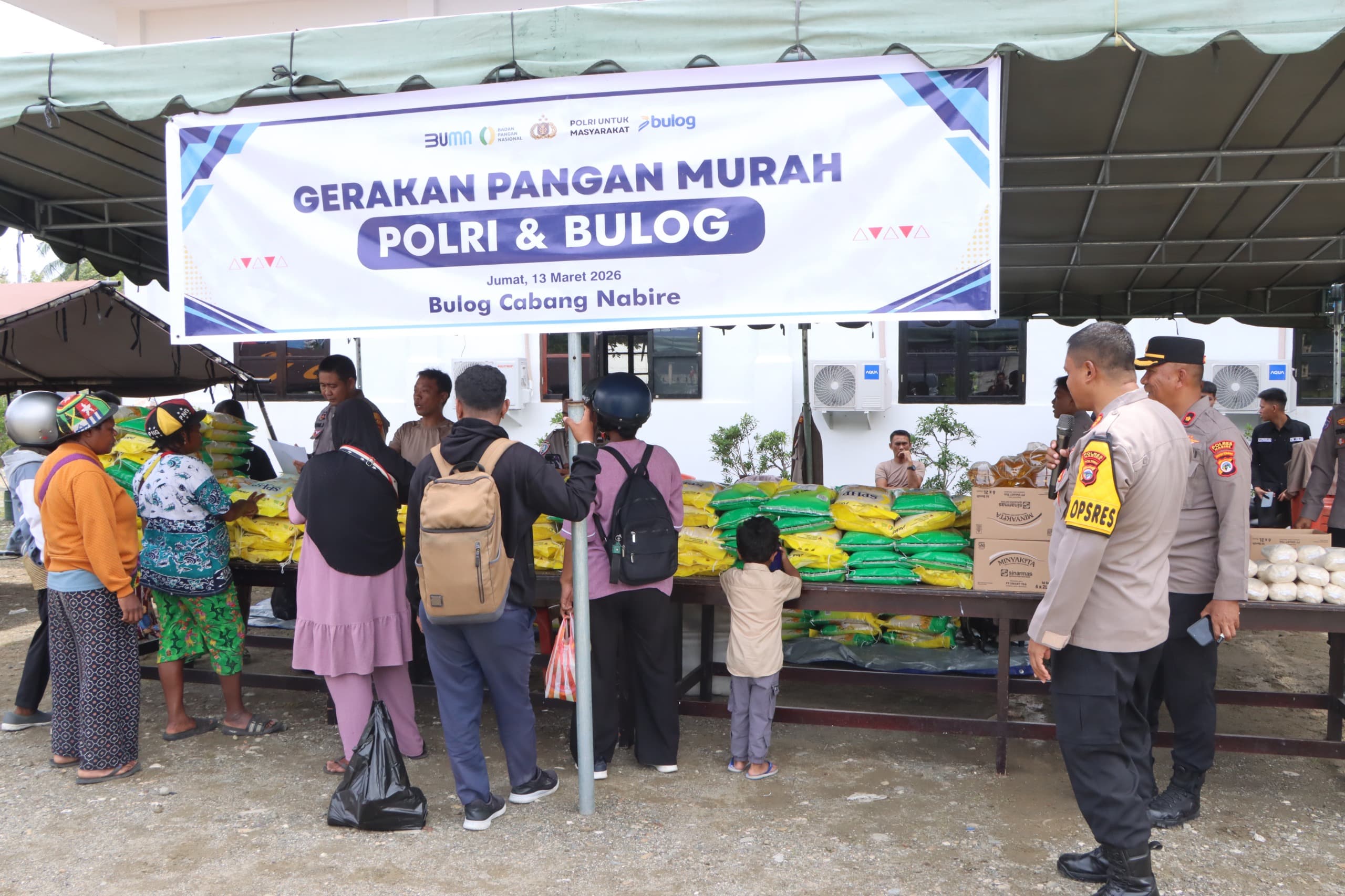 Nabire, Papua Tengah || Nabireterkini.com – Polres Nabire bersama Polda Papua Tengah menggelar Gerakan Pangan Murah untuk membantu masyarakat memenuhi kebutuhan bahan pokok menjelang Hari Raya Idul Fitri 1447 Hijriah. Kegiatan tersebut berlangsung di Aula Wicaksana Legawa Polres Nabire, Jumat (13/3/2026) pagi.